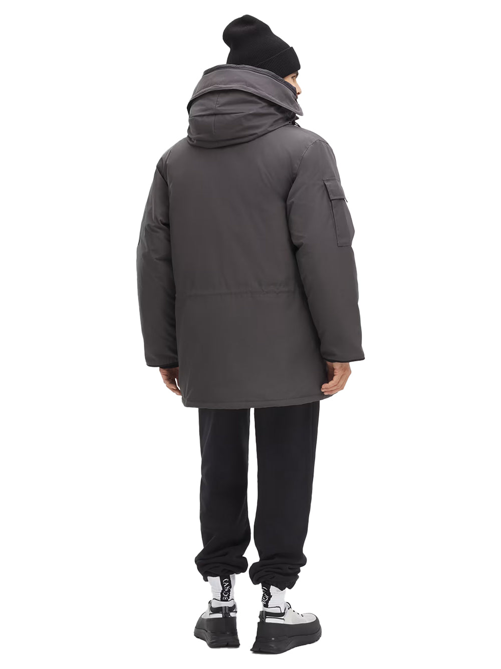Built for extreme cold, the Canada Goose Expedition Parka Graphite is an oversized and technical with an adjustable down-filled hood and fold-back hood trim. This echoes Trillium and Wyndham styling while adding an internal drawcord waist and Expedition webbing grab strap for on-the-move use.