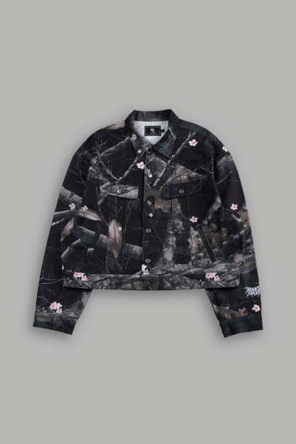 Forged From Iron Cropped American Denim Jacket in Darc Blossom Woodland Camo