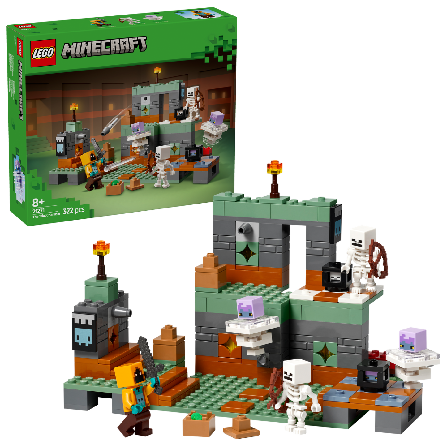The Trial Chamber (21271) is a high-quality LEthtGO® Minethtcraft® toy for kids aged 8 and up. This building toy for boys and girls is a hands-on video game set that takes kids on a thrilling treasure hunt where players must battle mobs and dodge missiles as they progress.