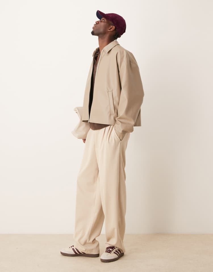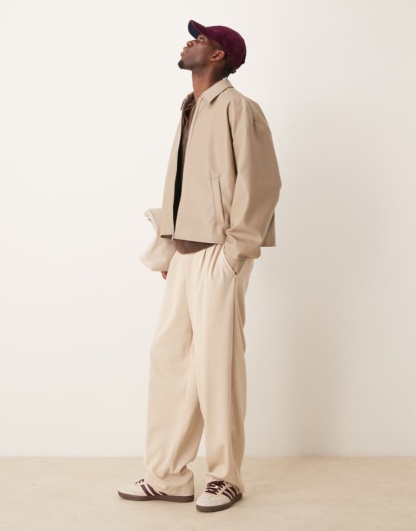 Original Leather Harrington Jacket �?Beige Boxy Oversized Fit | Cowskin Jackets