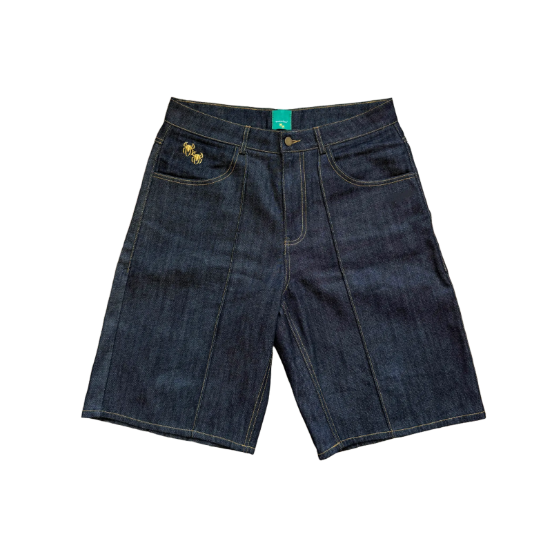 RAW DENIM PLEATED JORTS