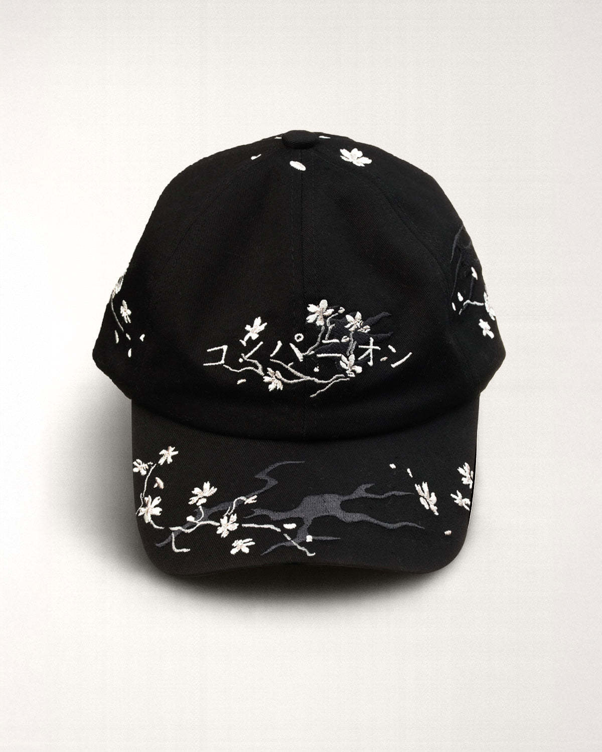 Custom 6 Panel Cap with All Over Skull Blossom Embroidery