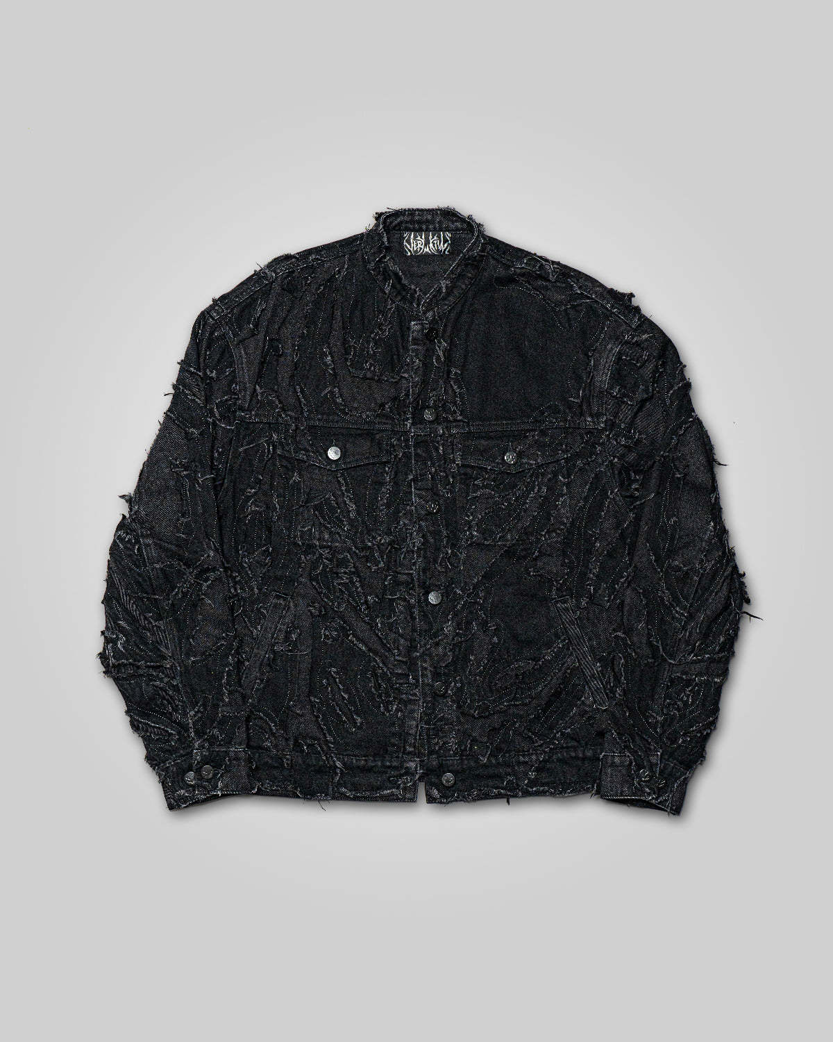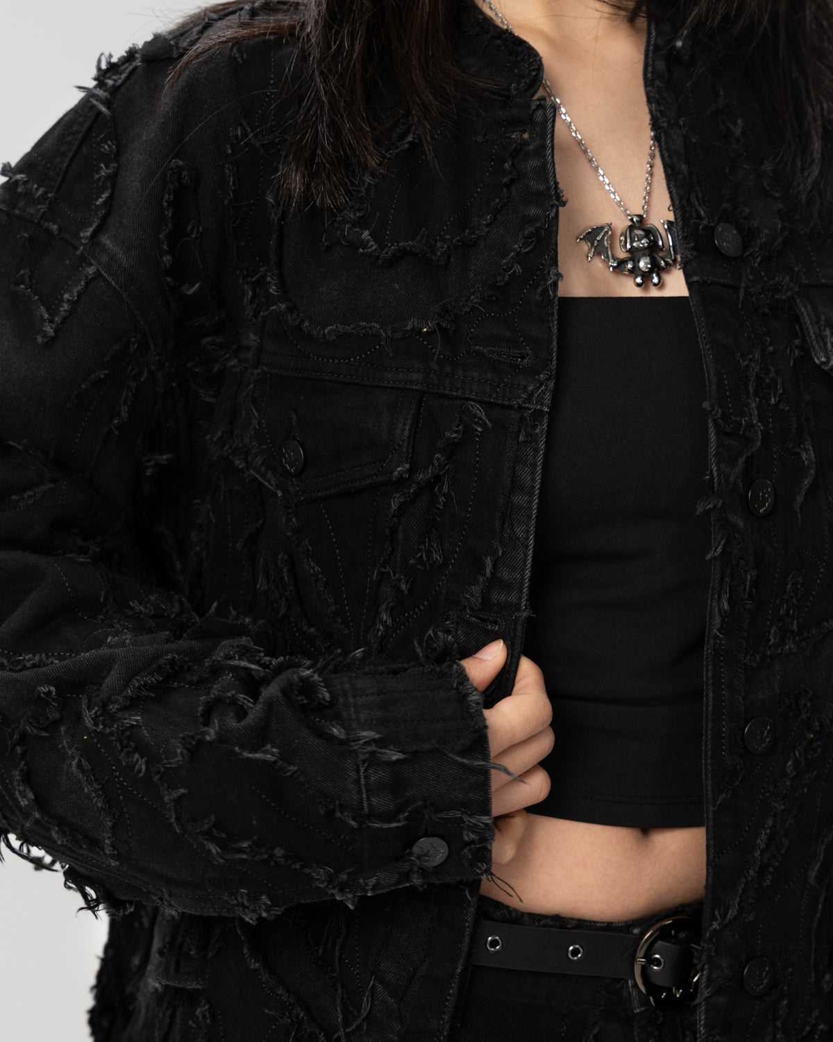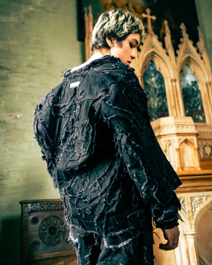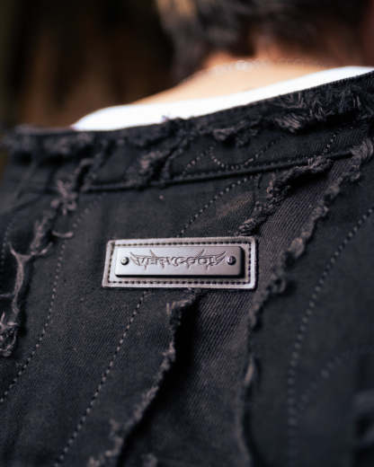 Distressed patchwork denim jacket