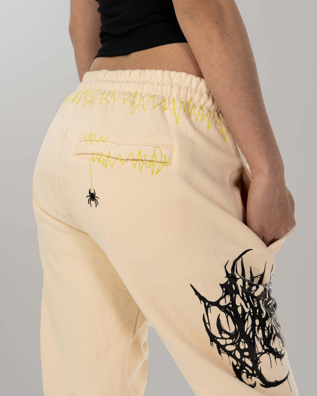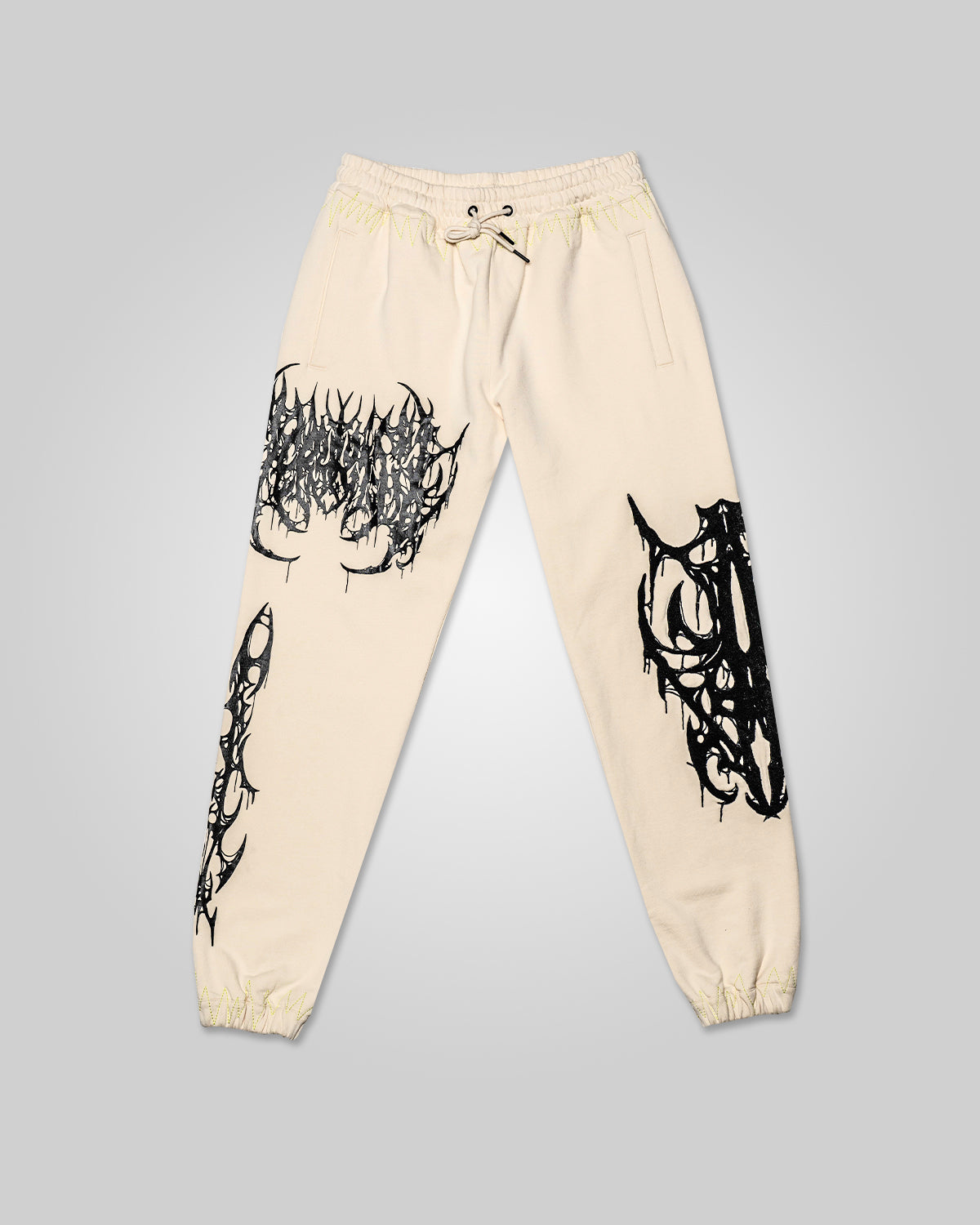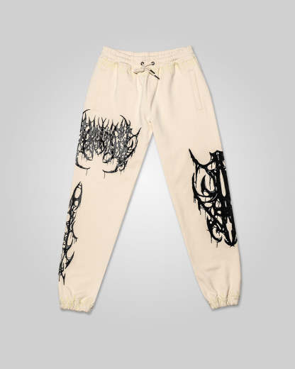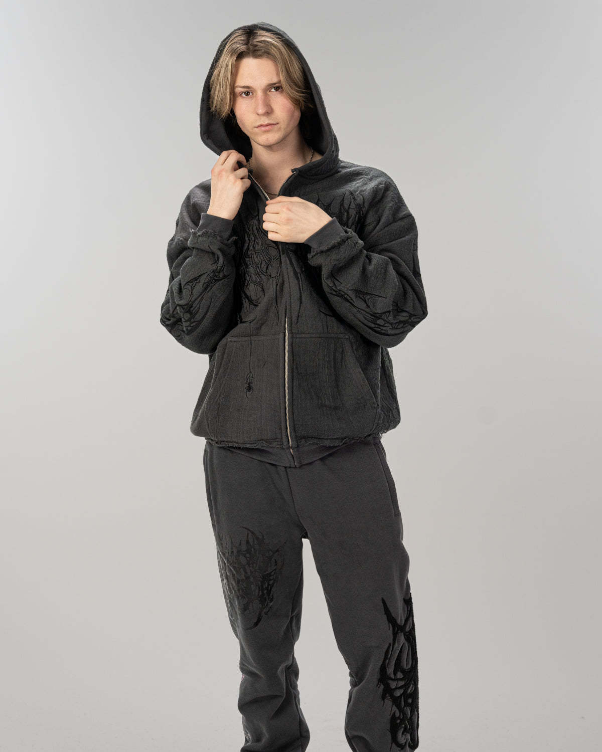 All over screen print, embroidered and tufted graphics